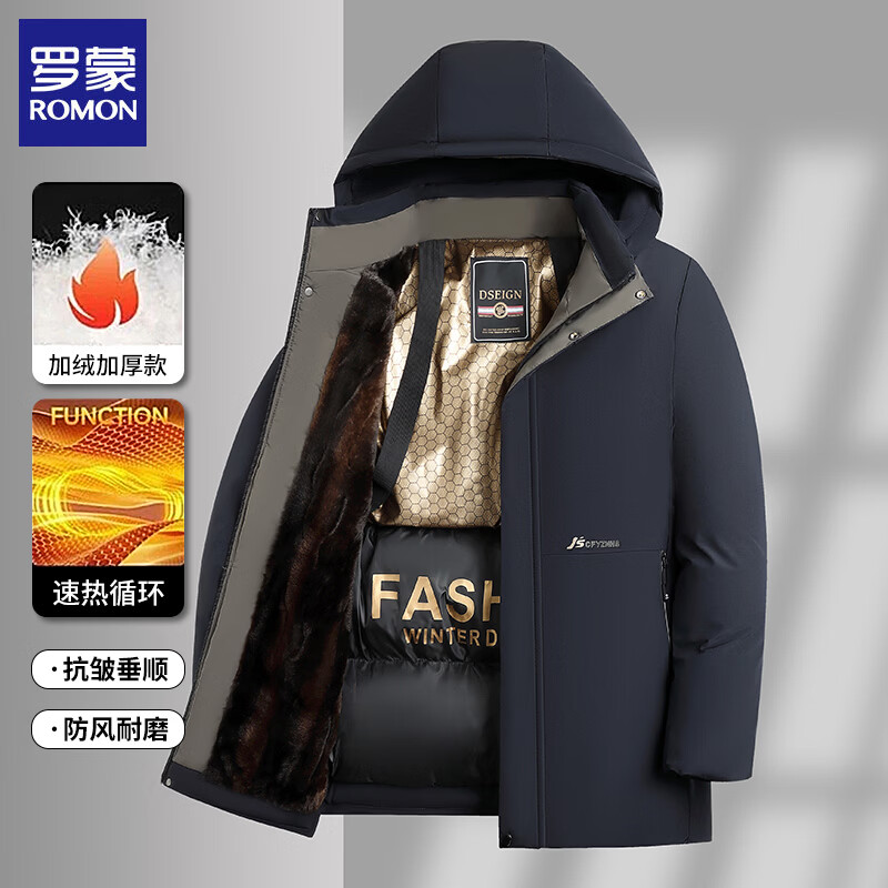 罗蒙(ROMON)【一衣多穿】中长款羽绒服男冬季新款可拆羽绒内胆加厚保暖外套男 7Y014988虾青【升级款】 XL (180) (建议135-150斤)