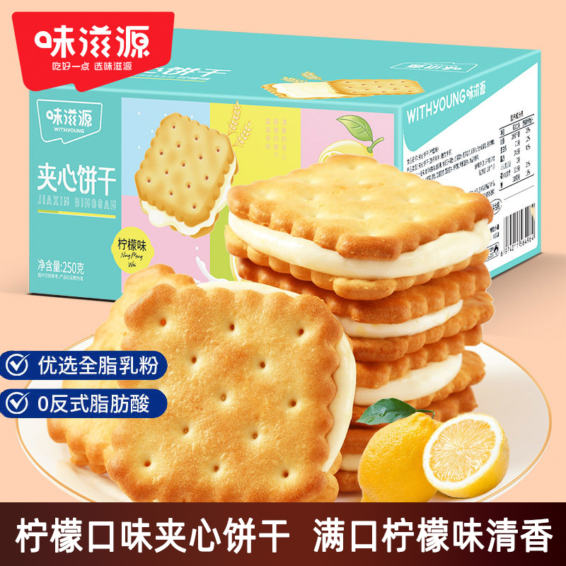 主打健康,非油炸,0反式脂肪酸,高油酸花生酱≥12%,够香醇够美味。【11.9包邮】味滋源花生酱夹心饼干