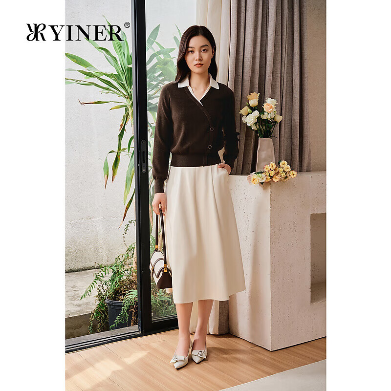 恒源祥纯色羊毛衫女士单排扣针织开衫外搭秋冬新款减龄绣标毛衣女装外套 香槟驼 S /160/84A