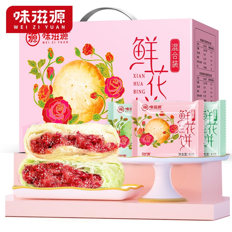 味滋源网红早餐糕点玫瑰鲜花饼,新鲜采摘,蜜汁调配,一口花香一口酥。