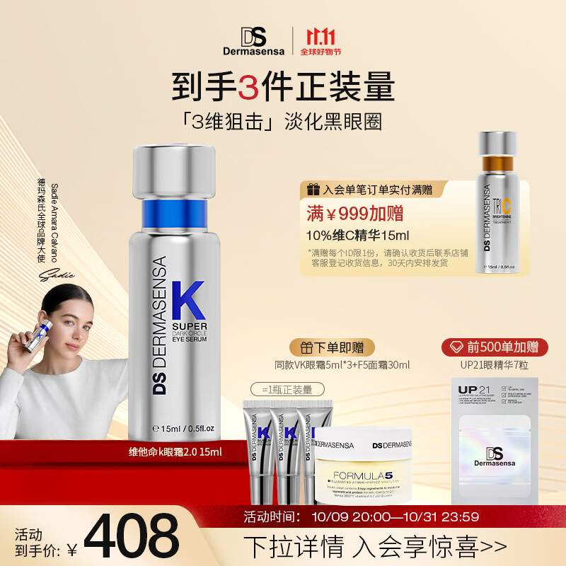 告别黑眼圈,亮眸新体验。呵护娇嫩肌肤,专业抗老必备。每日早晚呵护,光彩照人每一天。德玛森氏DSvk维k眼霜15ml