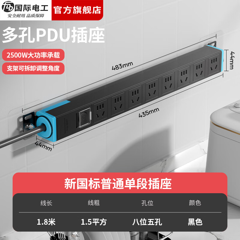 京东商城,品质无忧,万里挑一!德力西(DELIXI)新国标插座/插排/插线板 家用 宿舍 学生用分控插排 接线板 插板 【总控插排】八位五孔1.8米