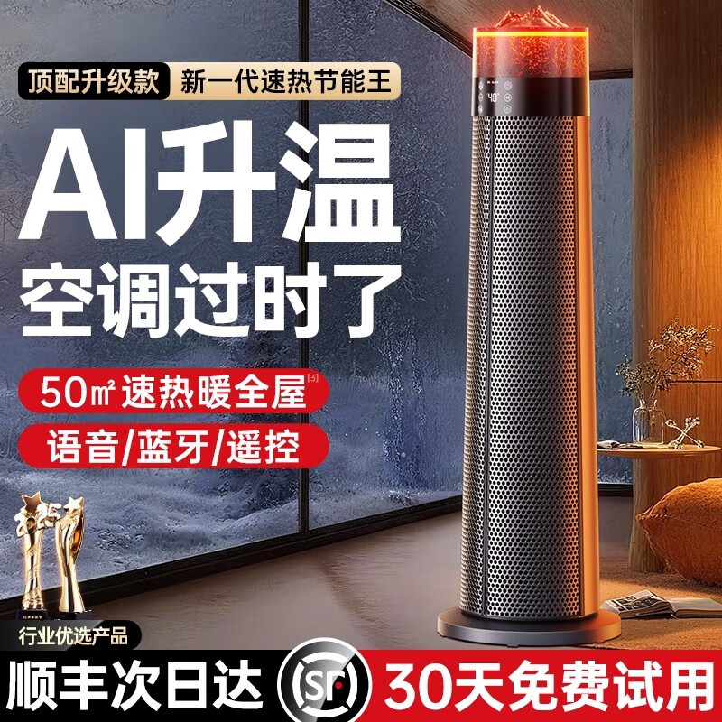 京东商城,品质无忧,万里挑一!EWIWE取暖器大面积便携式节能家用桌面地面办公室浴室卧室速热暖风机烘脚器 蓝金色/两档调节温度