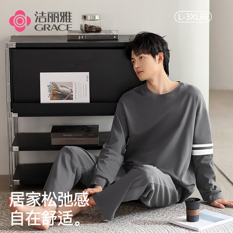 京东商城,品质无忧,万里挑一!芬腾情侣睡衣女士春秋季新款长袖纯棉休闲大码开衫男款家居服套装 宝兰(男) XL 建议:女124-142,男146-165斤